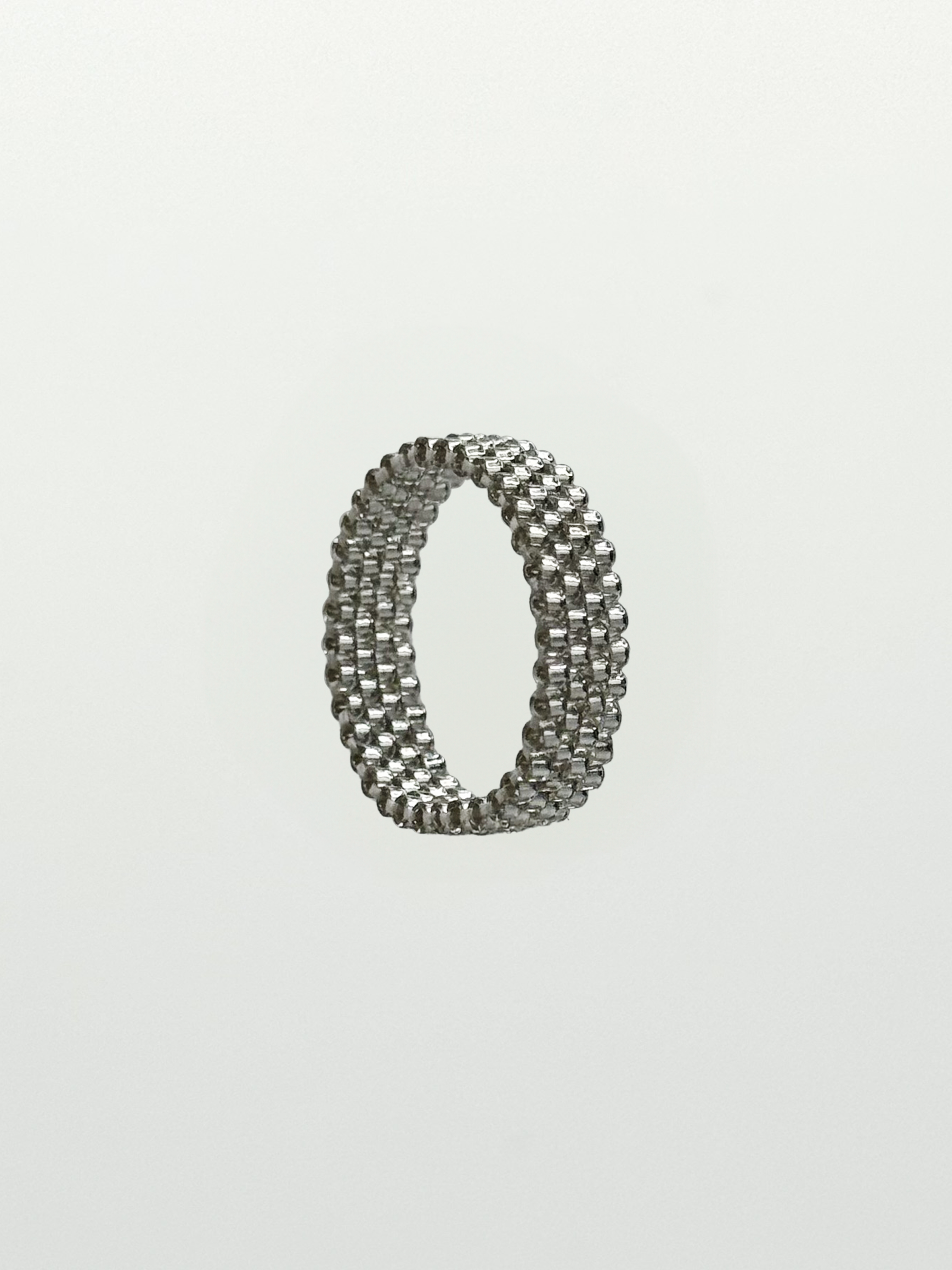 Precision-crafted, this tough 1 gram shiny silver ring embodies the essence of one-bead-at-a-time. About 200 Shiny Delica Beadz join together by the brick technique, a cornerstone of bead work.