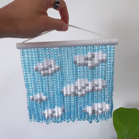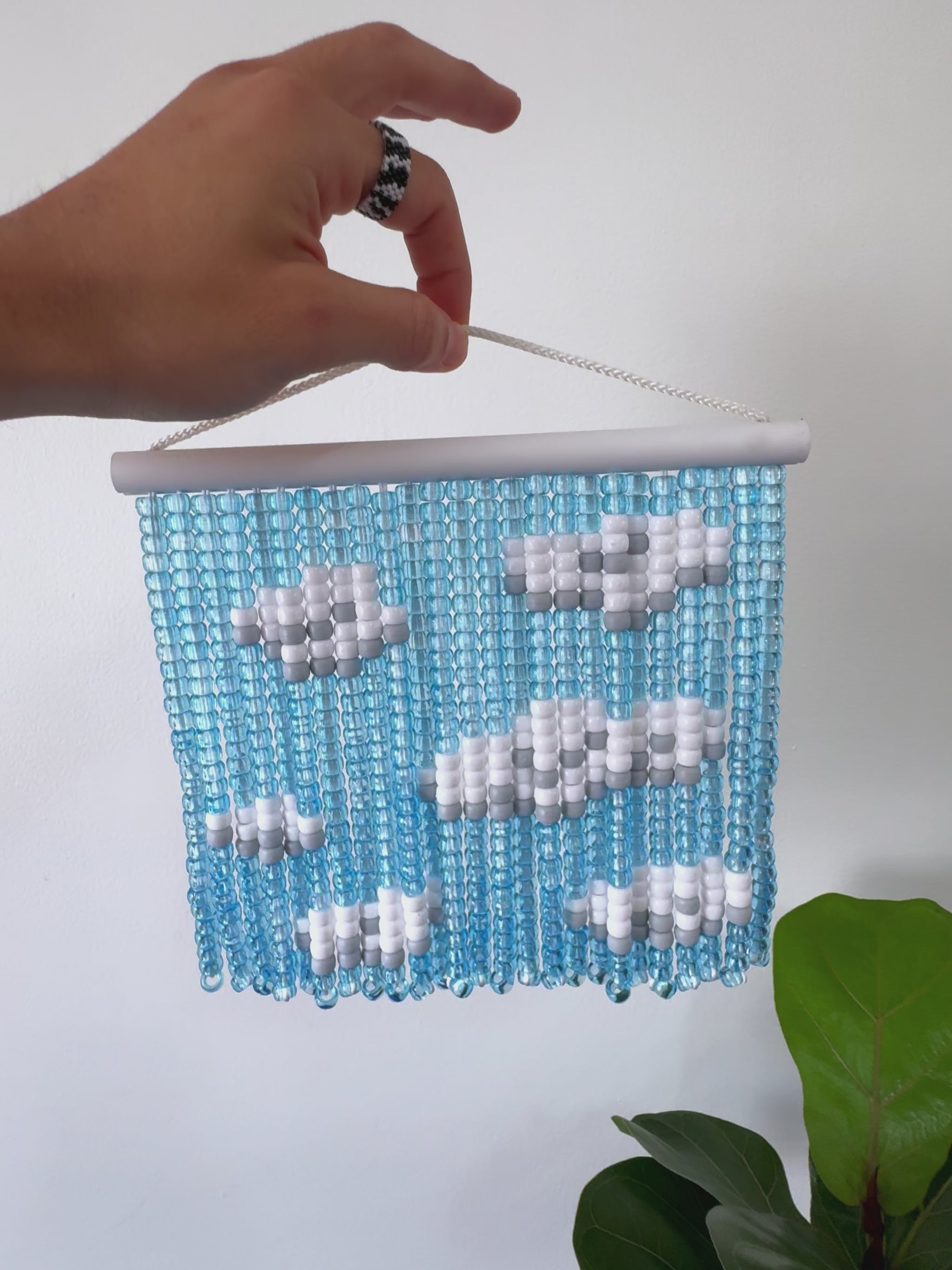 Inspired by those serene moments spent lying on the grass, gazing at the sky, the Some Clouds beaded curtain poster captures the peaceful feeling of watching clouds drift by. This playful art piece is made with 750 pony beadz.